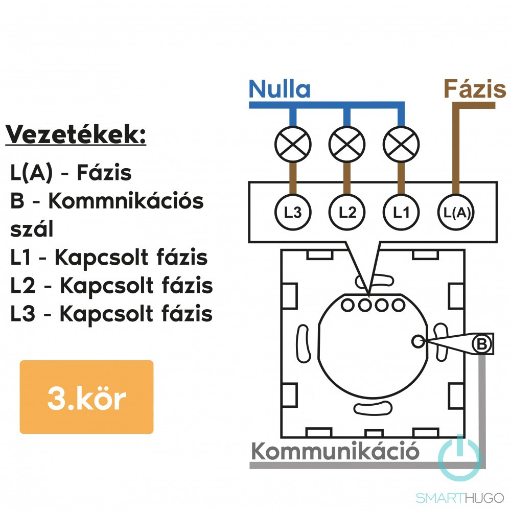 Bekötés: csak Fázis vezeték