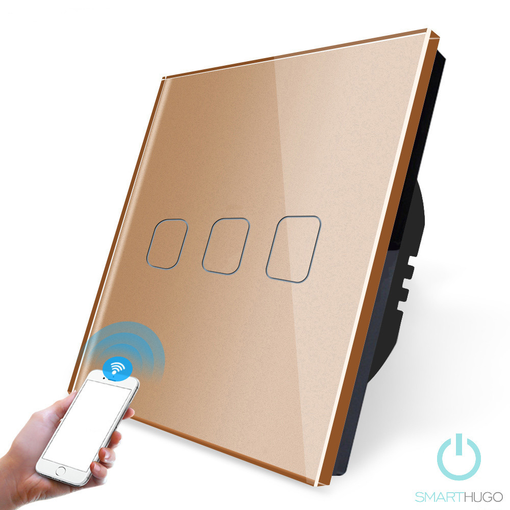 Kristályüveg érintőpanel, LED háttérvilágítás, három áramkörös vagy hármas csillárkapcsoló,2,4Ghz Wifi kommunikáció.